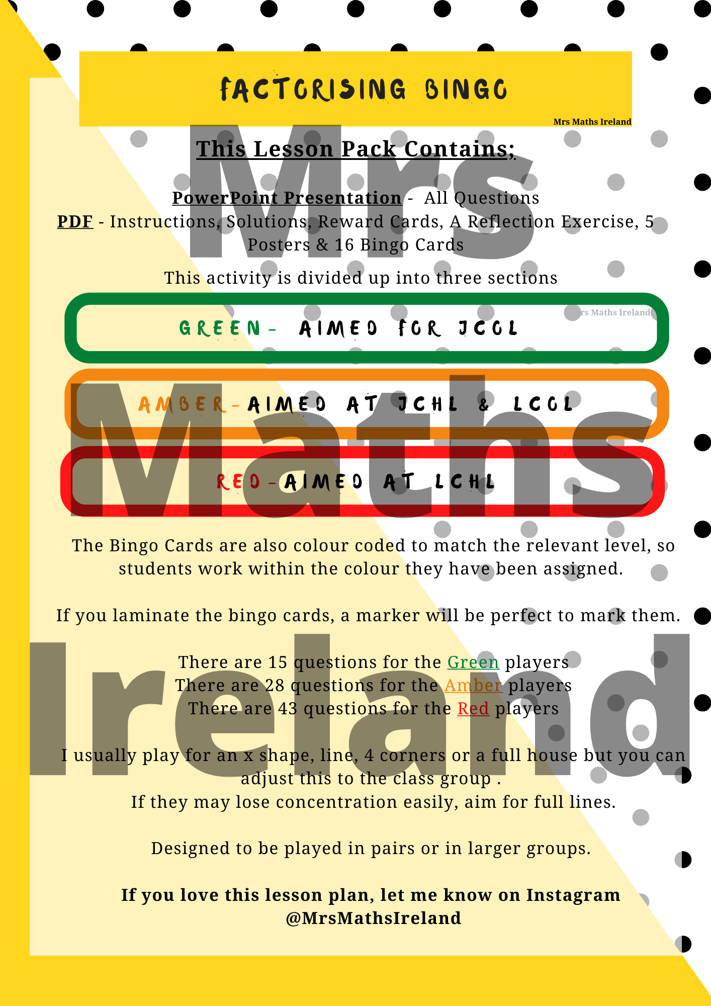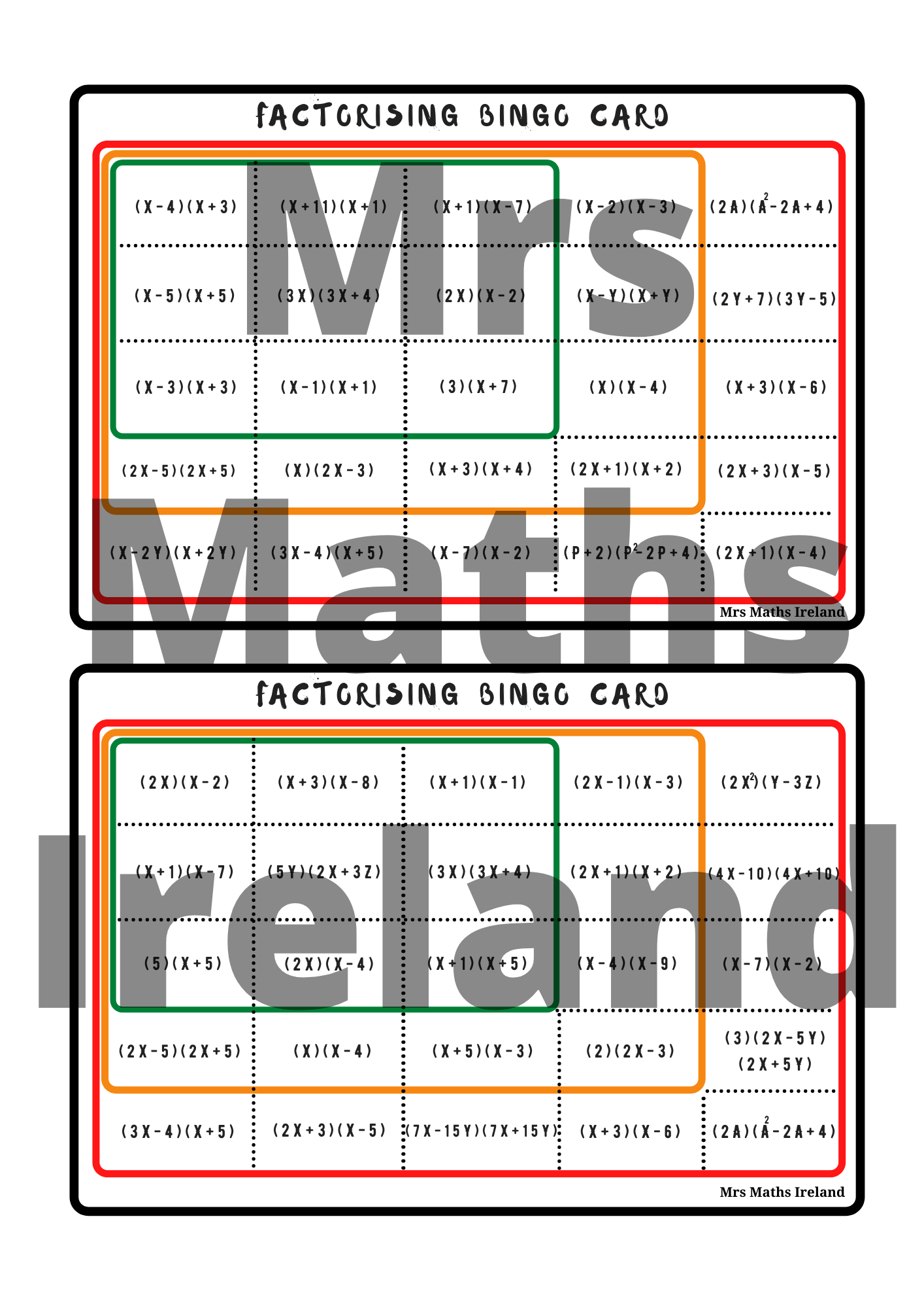Factorising Bingo - JCOL, JCHL, LCOL, LCHL - Pi Plans