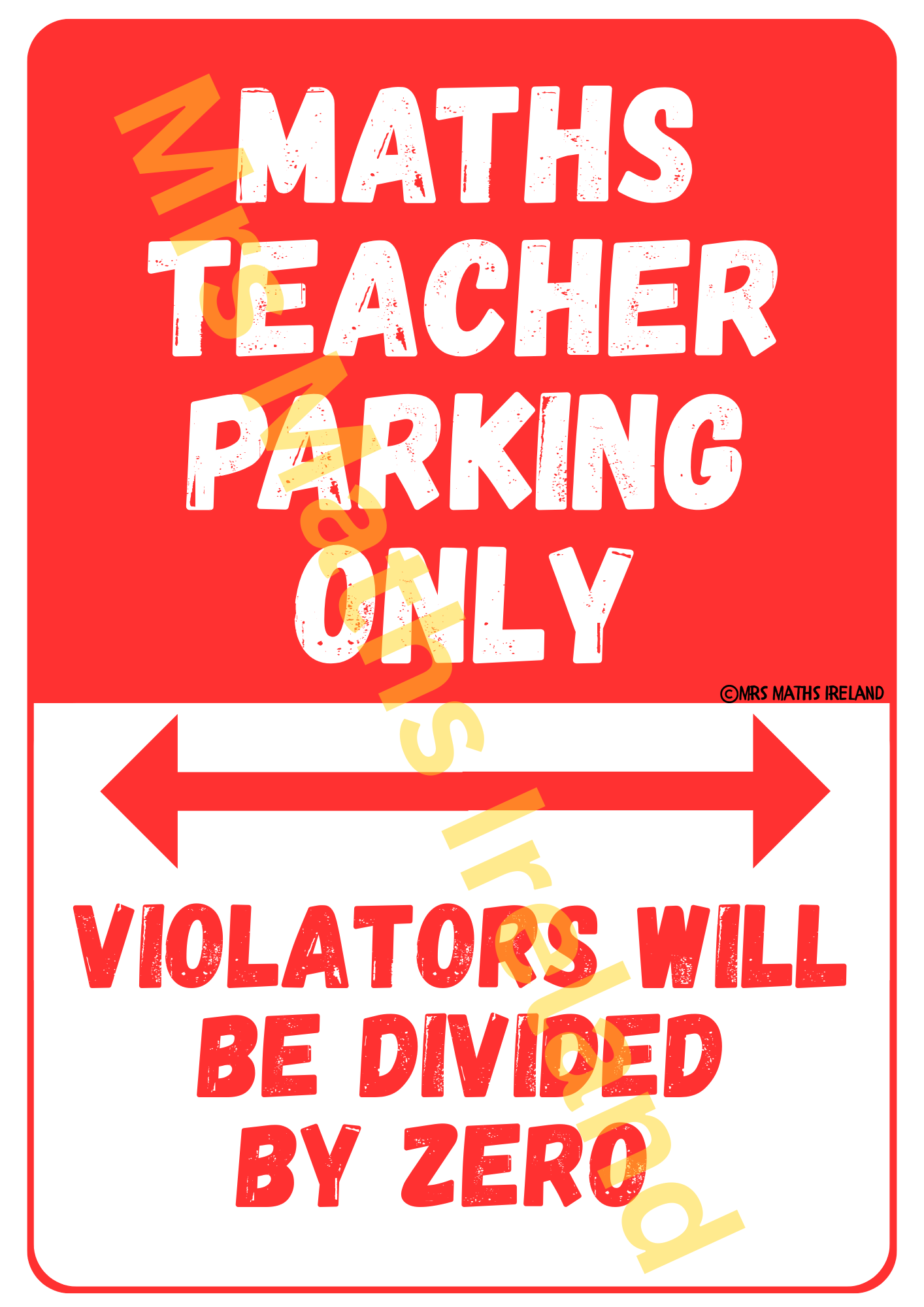 This bold and witty poster declares: “Maths Teacher Parking Only - Violators Will Be Divided by Zero.” Perfect for classrooms, staff rooms, or as a gift for the math enthusiast in your life. Equal parts clever and eye-catching, it’s guaranteed to get a smile (and maybe a groan) from students and colleagues alike.
